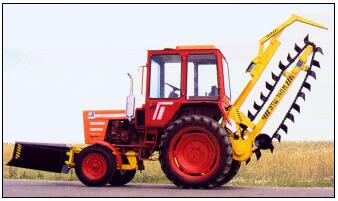 Предназначен для отрывки траншей прямоугольной формы в немерзлых грунтах до 3 категории включительно, шириной 150-280 мм, глубиной до 1 400 мм. Производительность, при заглублении рабочего органа 100 мм, до 90 м/час. Изготавливается на базе трактора Т-25А, Т-30А.